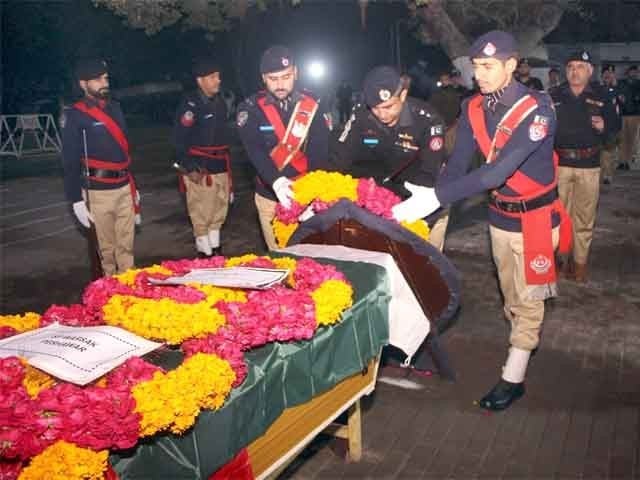 Later, an official who was the target of terrorists’ firing died of his injuries. The funeral prayers of the martyred officers were performed in Police Line Peshawar.