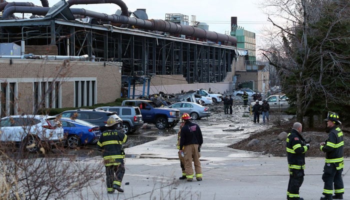 An explosion at a metals plant in the US state of Ohio caused metal particles and rocks to fall on nearby buildings.