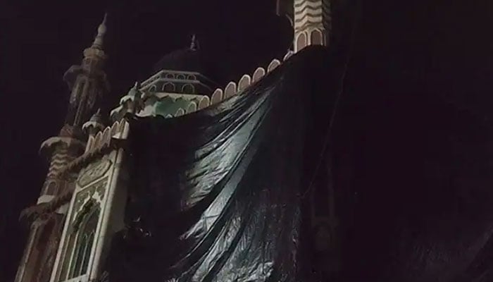 According to reports, on the instructions of the police administration, with the aim of maintaining peace and order, the Abdul Karim Masjid, located in the most sensitive area of Aligarh, was covered with a sheet late at night so that no color would get on it during Holi.