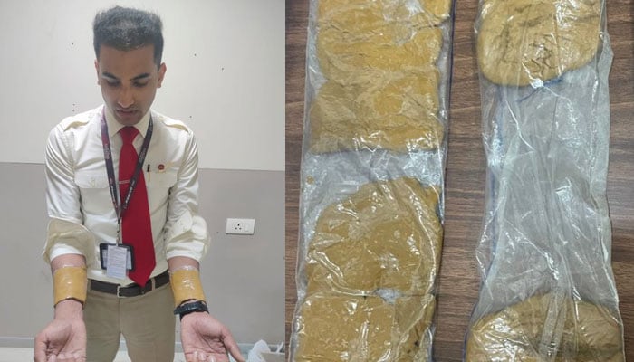 According to Indian media, the accused was arrested on a tip-off, who was hiding gold on his hands under his sleeves.