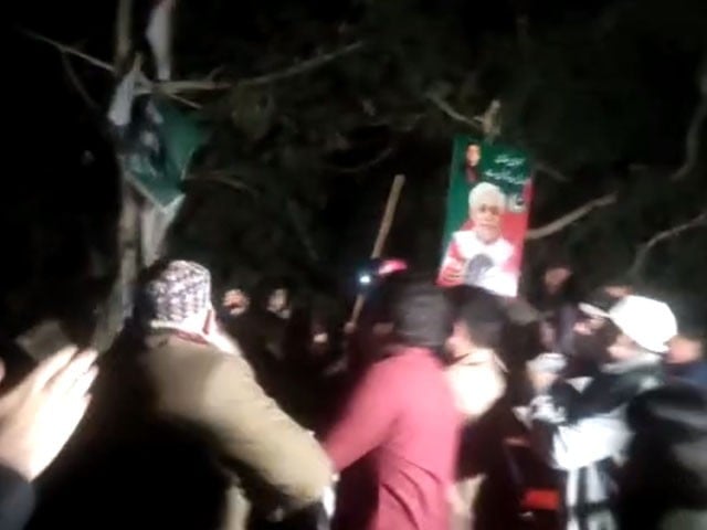 Workers of Tehreek-e-Insaf are holding sticks and stones in their hands, the policemen who came to Narga ran away to save their lives.