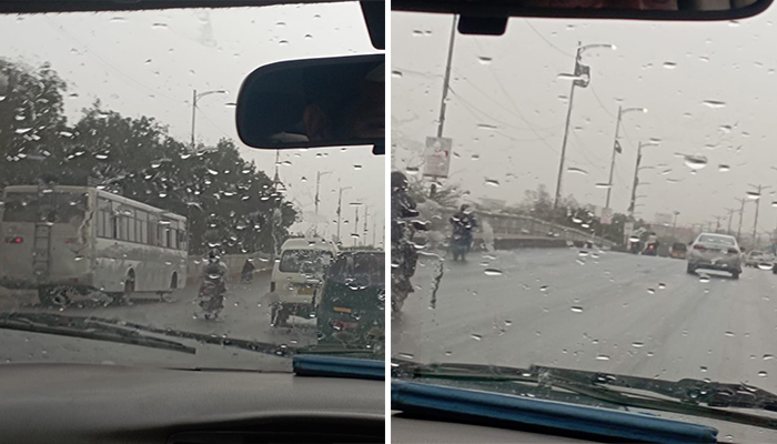 As soon as it rained in different areas of Karachi, many motorcyclists fell down and got injured due to slippage on the roads.