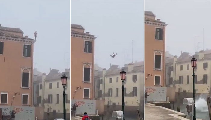 A man jumped from a 3-storey building into a canal in Venice, the capital of Italy, the video of which went viral on social media.