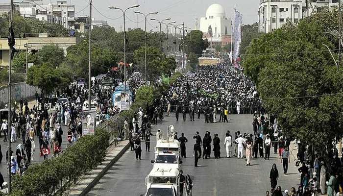 The procession will pass through traditional routes and end at Hussainiya Iraniyan Imambargah Kharadar. The procession will come from Nishtar Park to MA Jinnah Road, Seabreeze to Saddar Empress Market, Regal and back to MA Jinnah Road.