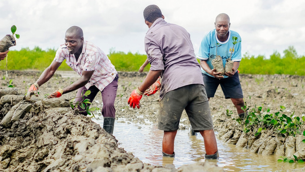 Local community members in Quelimane, Mozambique, restore mangrove forests to prevent flooding.