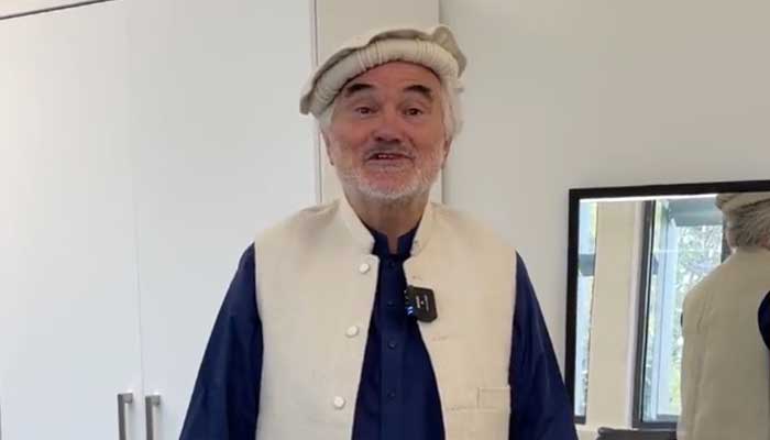 The German ambassador to Pakistan, Alfred Grans, wearing the Pakistani national dress, shirt, shalwar and hat, congratulated Eid.