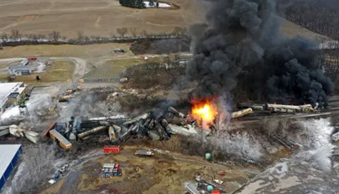 In America, 50 carriages of a freight train derailed, a fire broke out in the cargo train, there was no loss of life in the incident.