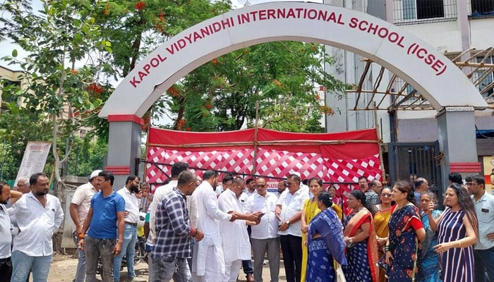 Later, parents of students and workers of political parties gathered outside the school and staged a protest.