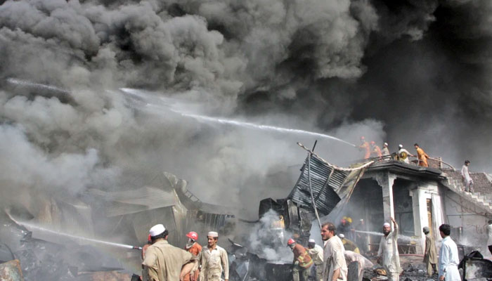 The fire that broke out in a warehouse near the cattle market on Peshawar Ring Road was brought under control after 6 hours.