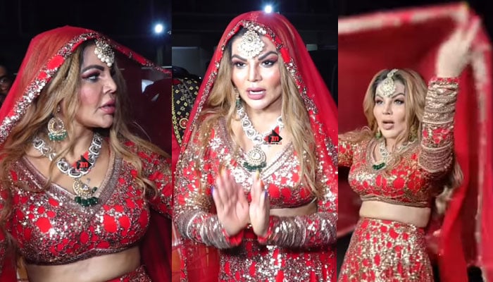 In a beautiful red lehenga, choli, Rakhi Sawant dances to the beat of the drum in joy after getting a divorce from her husband.