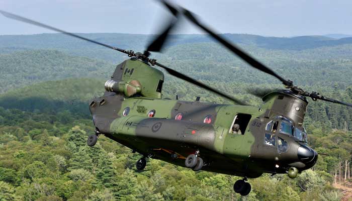The Department of National Defense says four Air Force officers were on board a CH147 Chinook helicopter when it crashed near the Ontario River, 160 kilometers from the capital Ottawa.