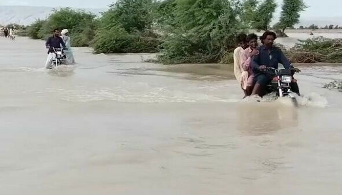 Flooding in the western Kir Thar mountain river adjacent to Faridabad has submerged several communication roads.