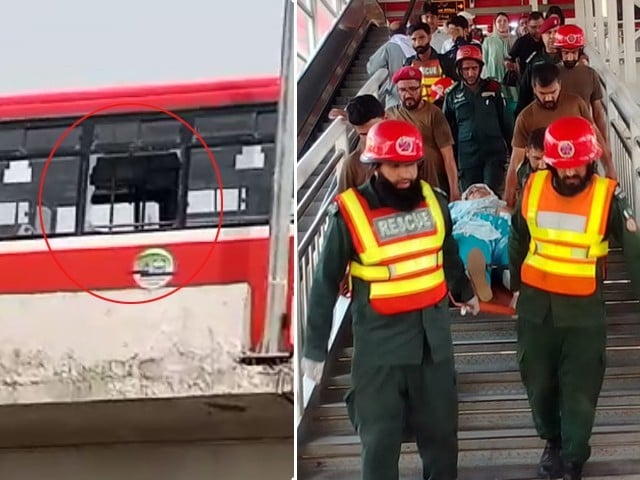 Rawalpindi: Due to the fire in the metro bus near Rahmanabad metro station, the passengers broke the glass and jumped, 2 people including a woman were seriously injured.