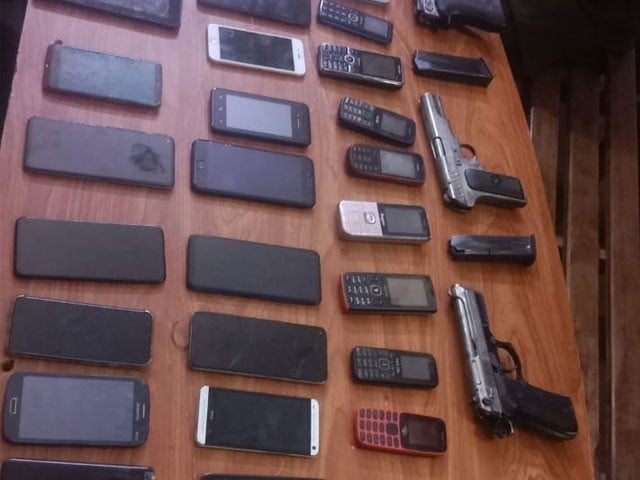 3 pistols, bullets and 37 stolen mobile phones were recovered from the possession