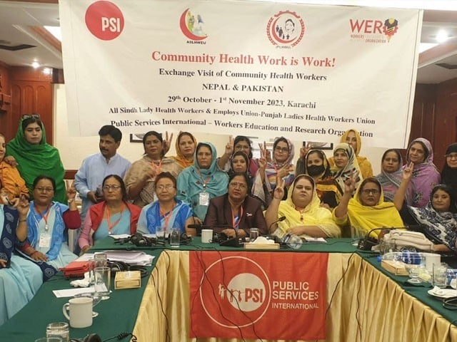 Karachi: Nepali community health workers have called the struggle of lady health workers of Pakistan as a beacon and said that Pakistan is a success story in the region where lady health workers got permanent job status after many years of long struggle.