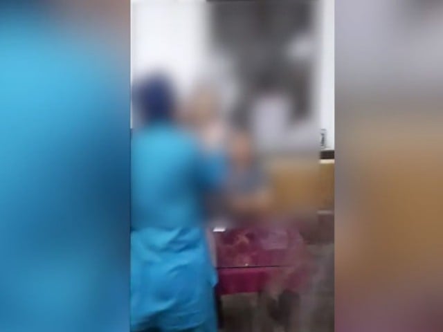 In GC University, a video of a female student hitting an assistant professor by picking up files and fighting has also surfaced, in which it can be seen that a few more female students are also standing on one side while a female student is hitting the files on the person sitting on the chair in front of her.